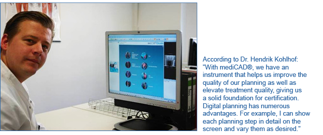 This digital planning and documentation program has replaced obsolete analog planning methods that rely on radiograph films and planning templates. The modern system eliminates the need to print out films as well as potential sources of errors associated with this process. This saves not only time, but money as well. The certainty provided by the system was very important.