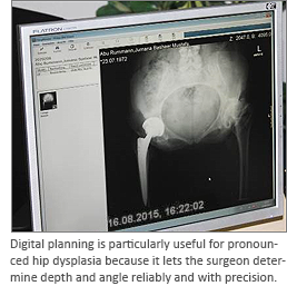 The ability to save time is another benefit of digital planning. It delivers much more precise results in much less time. According to the experiences of the hospital, a practiced surgeon needs only about two minutes to plan a hip or about five minutes for a knee. But even less experienced surgeons require no more than ten minutes with digital planning. And this includes the accurate documentation that the program generates automatically. Documentation is legally mandated, but cannot always be produced in the required scope and with the necessary accuracy when conventional planning is used. When standard implants are used, time savings are even greater. By comparison, conventional planning takes fifteen to thirty minutes.