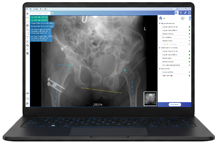 Automatische Planung, Manuelle Planung, Intertrochantäre Osteotomie, FAI, Biometrie, Pädiatrische Abmessungen, Abnutzungsmessung, Dreifache Beckenosteotomie.